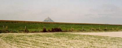 Mont Saint-Michel ist eines der beliebtesten Ausflugsziele. Schon von weitem erkennt man den Berg, wie unten auf dem Bild zu sehen ist ...