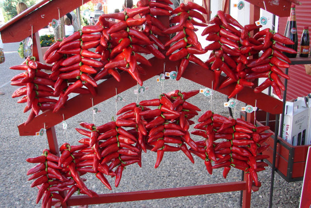 Espelette ist ein kleiner Ort im französischen Baskenland am Rande der Pyrenäen, der für seine Chilis bekannt ist.