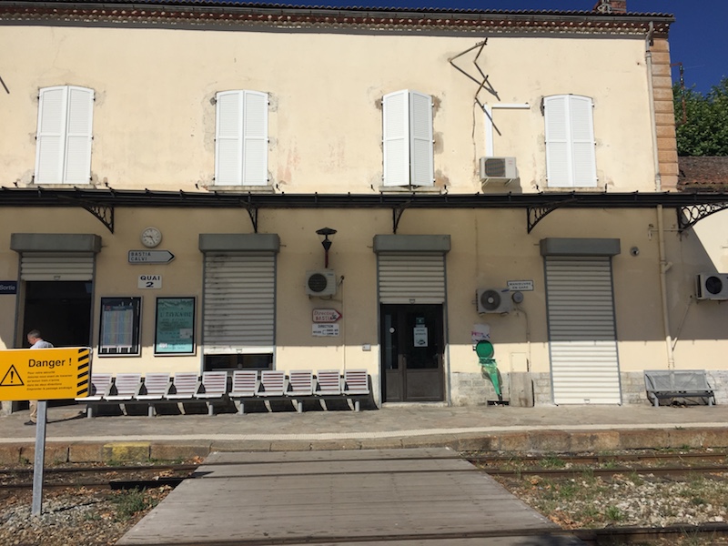 Durch Corte führt die Schmalspurbahn "Micheline" von Bastia nach Ajaccio. Um 10.40 Uhr stiegen wir zu, um nach Vizzavona zu gelangen. Den Höhenunterschied von 570 m bei einer Streckenlänge von ungefähr 25 km legt die Bahn in 45 Minuten zurück. Es war eine ziemlich abenteuerliche Fahrt in einem ziemlich überfüllten Zug.
