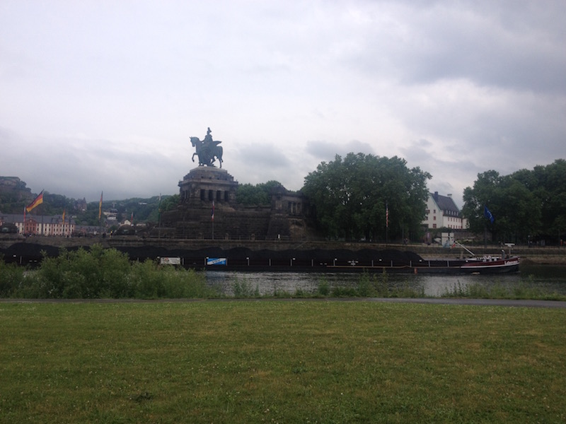Unsere Ankunft auf dem Campingplatz in Koblenz gegenüber dem Deutschen Eck war etwa um 16.30 Uhr (499 km). Nach einer kleinen Rast fuhren wir mit Liesel über die Mosel zum Deutschen Eck, um Kaiser Wilhelm zu besuchen, der wie wir den frischen Temperaturen trotzte. Danach machten wir uns auf zu einem Altstadtbummel mit anschließendem Abendessen am Rheinufer im Weinlokal Winninger. Das Essen dort ist wirklich ein Genuss. Nach Bummel und der abendlichen Stärkung fuhren wir mit der Liesel zurück zum Campingplatz. Nachts war es relativ kalt und es regenete zum Teil.
